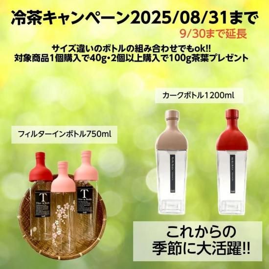 ●フィルターインボトル750ml ●計量スプーン お湯で淹れるお茶は、お茶に合わせてお湯の温度・お湯の量・茶葉の量等、美味しく淹れる為にコツがいりますが、 水出しのお茶は甘み・うま味が出やすく簡単な手順で失敗なく作ることが出来ます。 ●作り方は簡単!! 付属の計量スプーンで茶葉を1杯ボトルに入れ水をボトルに注ぐだけ! ボトル上部に茶こしが付いてるのでそのまま注げます。 水出しのお茶は驚くほど美味しいので、プレゼントにもお勧めです。 ※ボトルカラーをお選び下さい。 ============================================== 冷茶キャンペーン2025/05/23~2025/08/31→9/30まで延長となりました サイズ違いのボトルでもok 対象商品1個購入で40g・2個以上購入で100g茶葉プレゼント 冷茶が簡単に美味しく作れるボトル!!\これからの季節におすすめです/ 対象商品(フィルターインボトル750ml・カークボトル1200ml) ★★1個購入で40g・2個以上購入で100g茶葉プレゼント中★★ ==============================================