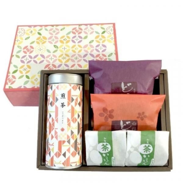 お茶:知覧茶80g×1缶 お菓子:どら焼き×2・かるかん×2 いつもお世話になっている方へ日頃の感謝の気持ちとホットする時間を 贈ってみてみませんか? お茶によく合う和菓子と鹿児島銘菓のかるかんにも知覧知を使用しているちょっとリッチなセットです。 【ご注意】 ※賞味期限:お茶1年間/どら焼き・かるかん14日間 (ギフトの種類によってケース・缶・包装紙が変わります) ※賞味期限の関係上お届け先が北海道・沖縄・離島のご注文はお受け出来ません申し訳ございません